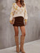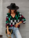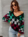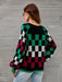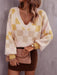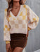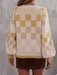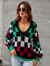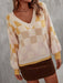 Checkered V-Neck Lantern Sleeve Sweater